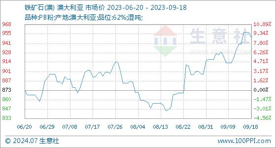 9月18日生意社铁矿石(澳)基准价为957.44元/吨