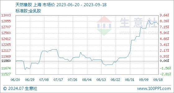 9月18日生意社天然橡胶基准价为12830.00元/吨