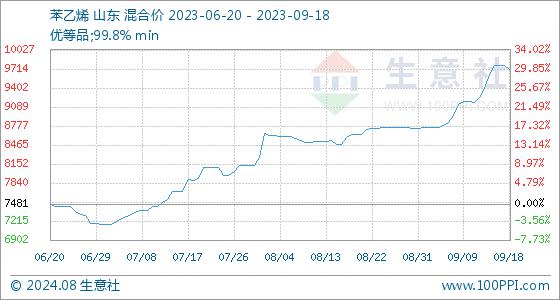 9月18日生意社苯乙烯基准价为9766.67元/吨