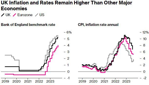 英国通胀和利率仍高于其他主要经济体