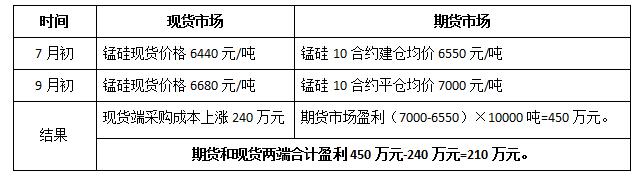 该企业属于生产型企业,原材料价格波动较大,若后期锰硅价格大幅上涨,则带动生产成本抬升,进而压缩企业利润,原材料成本上涨即是企业的主要风险,因此企业的套保方向为买入套期保值,以规避原材料大幅上涨的风险。