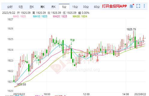 周五(9月22日)本交易日现货黄金日内维持涨势,今日开盘报1919.08美元/盎司,最高触及1925.89美元/盎司,最低触及1918.95美元/盎司,截止发稿金价报1924.82美元/盎司,涨幅0.29%。