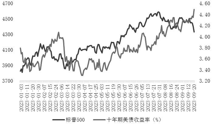 图为标普500与十年期美债收益率(作者单位: 一德期货)