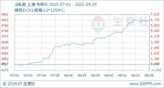 9月29日,生意社冷轧板基准价为4820.00元/吨,与本月初(4710.00元/吨)相比,上涨了2.34%。