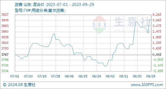 9月29日,生意社沥青基准价为3909.33元/吨,与本月初(3729.33元/吨)相比,上涨了4.83%。