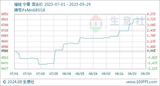 9月29日,生意社锰硅基准价为6818.33元/吨,与本月初(6666.67元/吨)相比,上涨了2.27%。