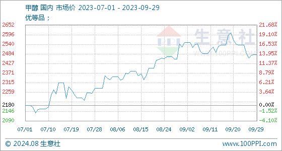 9月29日,生意社甲醇基准价为2478.33元/吨,与本月初(2525.00元/吨)相比,下降了-1.85%。