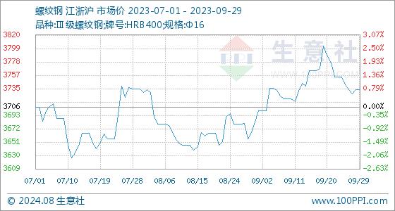 9月29日生意社螺纹钢基准价为3734.00元/吨