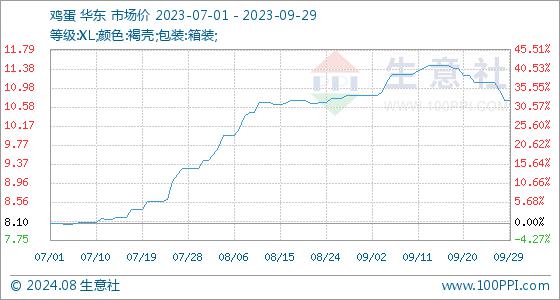 9月29日生意社鸡蛋基准价为10.71元/公斤