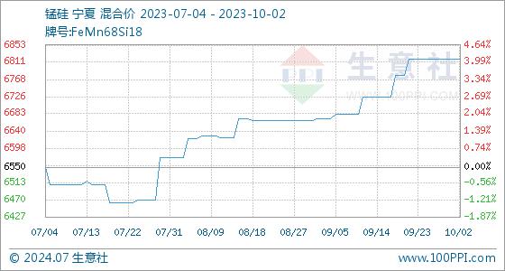 10月2日,生意社锰硅基准价为6818.33元/吨,与本月初持平。