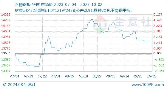 10月2日生意社不锈钢板基准价为13900.00元/吨