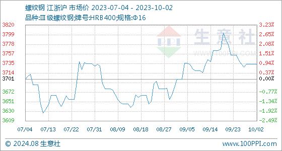 10月2日生意社螺纹钢基准价为3734.00元/吨