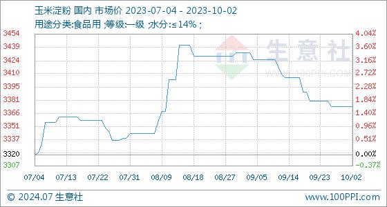 10月2日,生意社玉米淀粉基准价为3374.00元/吨,与本月初持平。
