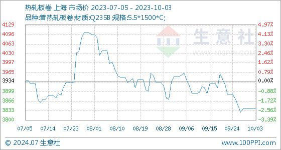 10月3日生意社热轧板卷基准价为3840.00元/吨