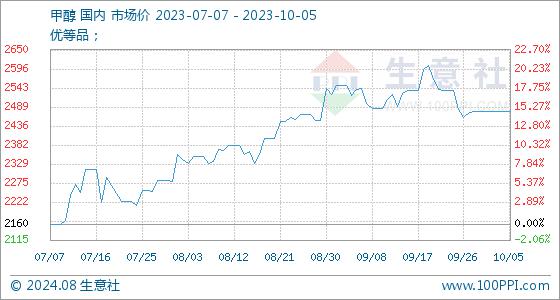 10月5日,生意社甲醇基准价为2478.33元/吨,与本月初持平。