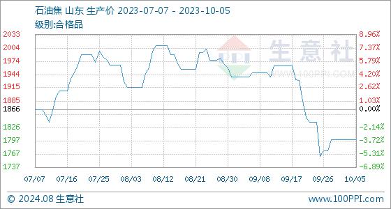 10月5日,生意社石油焦基准价为1800.00元/吨,与本月初持平。