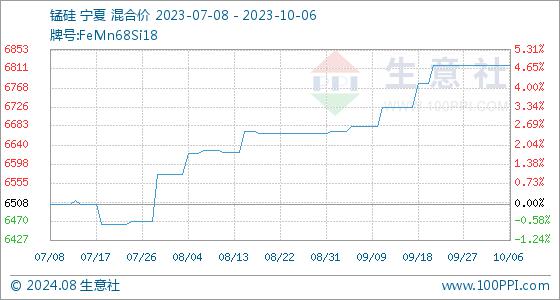 10月6日,生意社锰硅基准价为6818.33元/吨,与本月初持平。