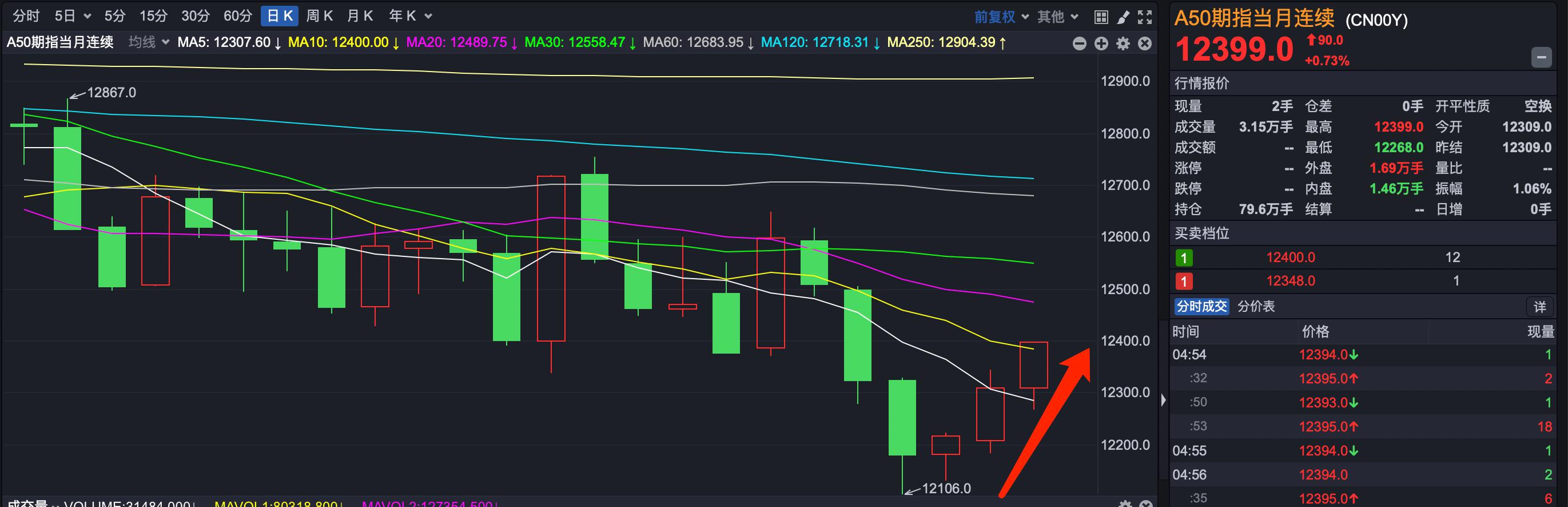 10月4日,A50期指探底回升,当天上涨0.31%。