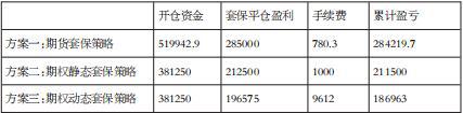 通过对上述三种方案进行对比发现,受现货销售疲软影响,螺纹钢期货跌幅明显,利用螺纹钢期货、期权套保均盈利。其中螺纹钢期货套保盈利明显,但利用螺纹钢期货套保保证金也较高。但由于螺纹钢期权刚上市时,受到投资者的普遍关注,导致开仓权利金较高,影响后期套保效果。方案三期权动态套保策略并不优于方案二期权静态套保策略,主要是受对冲成本和对冲频率的影响。