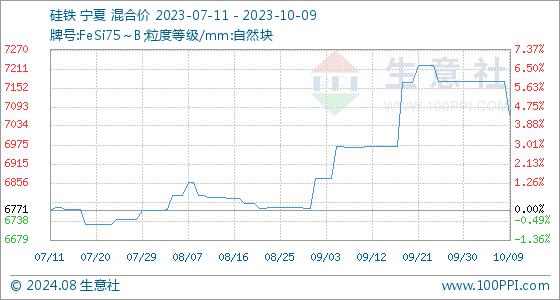 10月9日,生意社硅铁基准价为7171.43元/吨,与本月初持平。