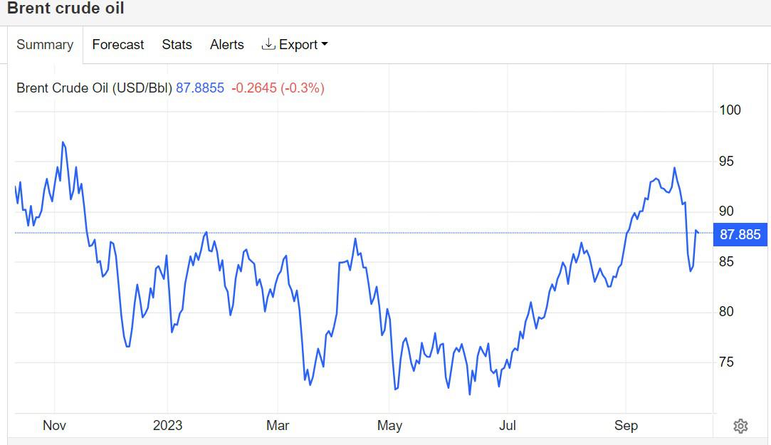 在上周,欧佩克+两大领导国在各自声明中宣布坚持减产,其中沙特方面继续将原油日产量额外削减100万桶,俄罗斯则在早些时候与欧佩克+成员国达成的减产基础上,将原油日产量额外减产30万桶。统计数据显示,自6月份以来,全球原油价格基准——布伦特原油价格上涨逾25%,一度至每桶95美元以上,主要逻辑在于全球原油供需失衡,即出口大国沙特阿拉伯和俄罗斯在欧佩克+组织已经实施的减产配额之外,还实施了自愿的额外减产,进而导致原油供不应求;此外,近期巴以新一轮冲突势必将成为刺激国际油价上行的新催化剂,全球能源价格通胀之火似乎重新燃起。