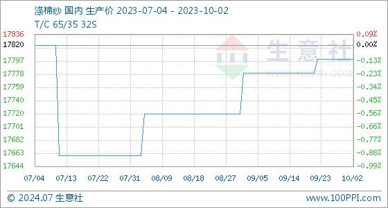 10月2日,生意社涤棉纱基准价为17800.00元/吨,与本月初持平。