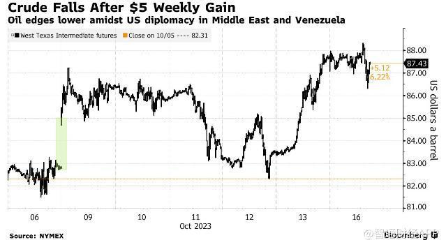 由于上周油价飙升以及美国可能已与委内瑞拉达成放宽制裁协议,油价周一收低。交易员们还继续关注巴以冲突,担心危机可能升级从而威胁到原油供应。