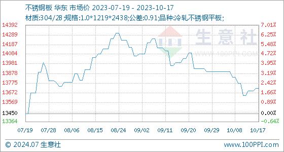 10月17日生意社不锈钢板基准价为13721.43元/吨