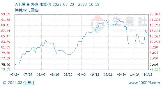 10月18日生意社WTI原油基准价为86.66美元/桶
