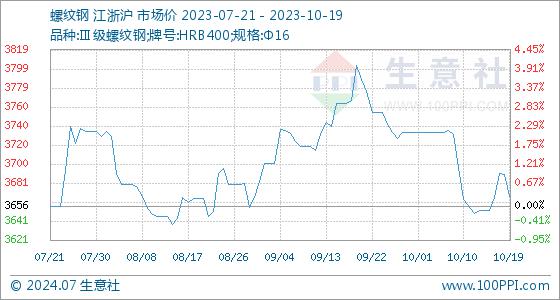 10月19日生意社螺纹钢基准价为3689.56元/吨