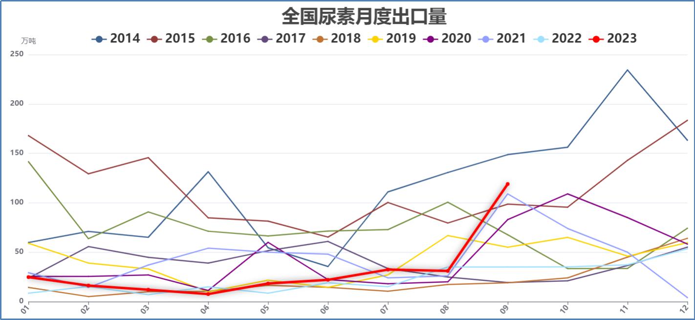 需求端来看,短期内贸仍是萎缩的,秋季农业截止到目前已经接近尾声,农需将进入淡季,复合肥秋季肥的生产基本结束,工业需求方面,受制于房地产行情不够景气,三聚氰胺、板材整体需求同比并未有太大亮点,因此短线来看国内需求保持相对走弱态势。