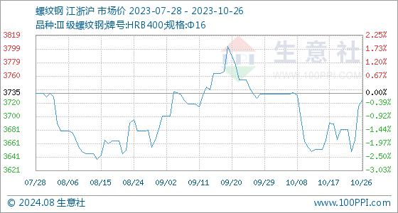 10月26日生意社螺纹钢基准价为3716.22元/吨