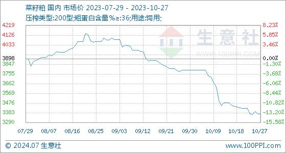 10月27日生意社菜籽粕基准价为3371.67元/吨