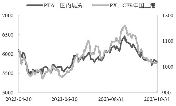 图为PTA与PX价格走势(单位:元/吨)
