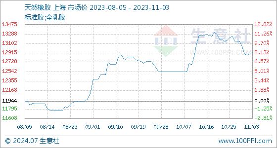 11月3日生意社天然橡胶基准价为12890.00元/吨