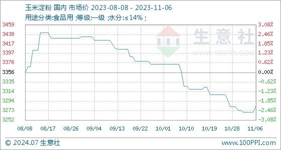 11月6日生意社玉米淀粉基准价为3270.00元/吨