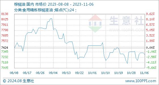 11月6日生意社棕榈油基准价为7322.00元/吨