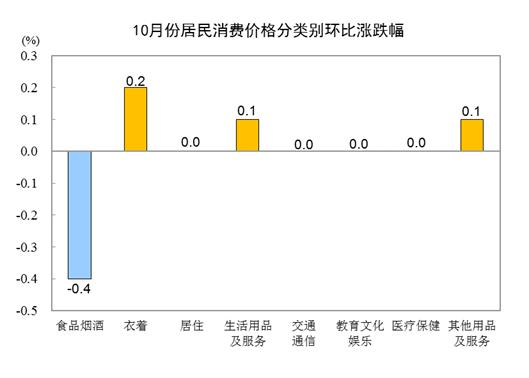 国家统计局:10月CPI同比下降0.2%环比下降0.1%