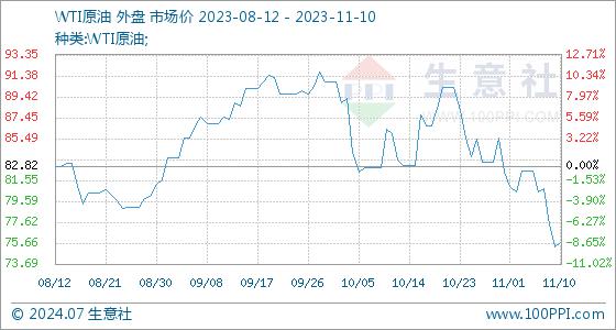 11月10日生意社WTI原油基准价为75.33美元/桶