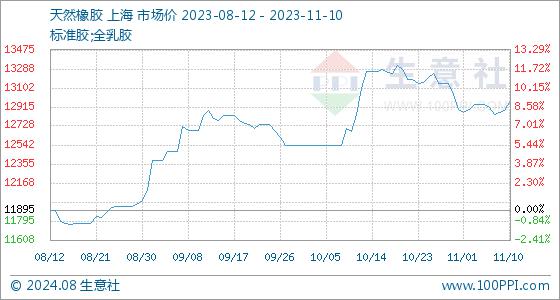 11月10日生意社天然橡胶基准价为12880.00元/吨