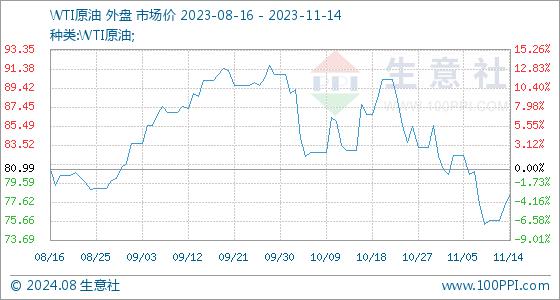 11月14日生意社WTI原油基准价为77.17美元/桶