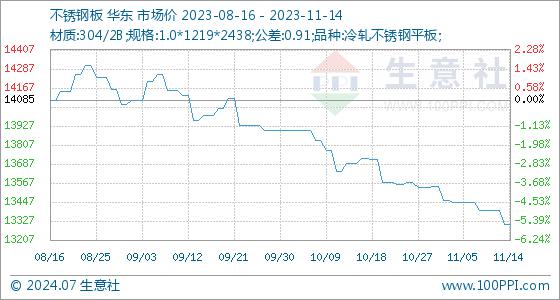 11月14日生意社不锈钢板基准价为13307.14元/吨