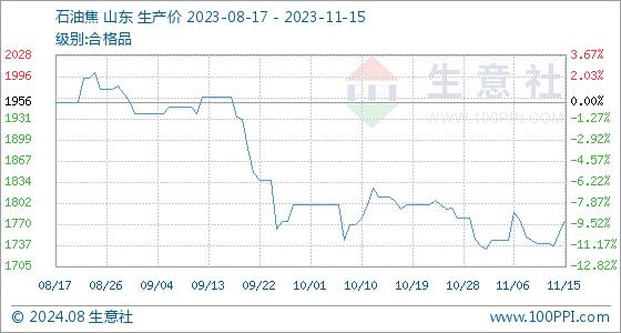 11月15日,生意社石油焦基准价为1757.50元/吨,与本月初(1737.50元/吨)相比,上涨了1.15%。