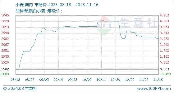 11月16日生意社小麦基准价为2984.00元/吨