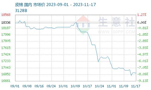 11月17日中国棉花指数3128B级均价16915元/吨,较上一日下跌43元/吨。