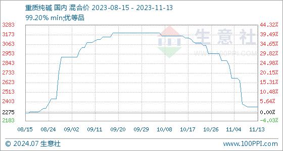 11月13日生意社重质纯碱基准价为2340.00元/吨