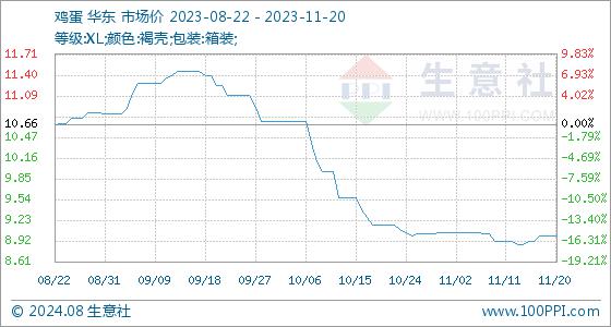 11月20日生意社鸡蛋基准价为8.99元/公斤