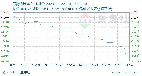 11月20日生意社不锈钢板基准价为13057.14元/吨
