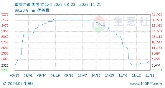 11月21日生意社重质纯碱基准价为2410.00元/吨
