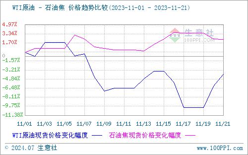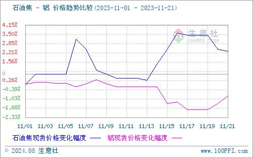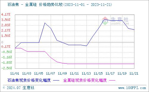据生意社商品分析系统显示,截止到11月21日山东市场地炼石油焦价格为1772.50元/吨,较11月13日1737.50元/吨上涨2.01%。